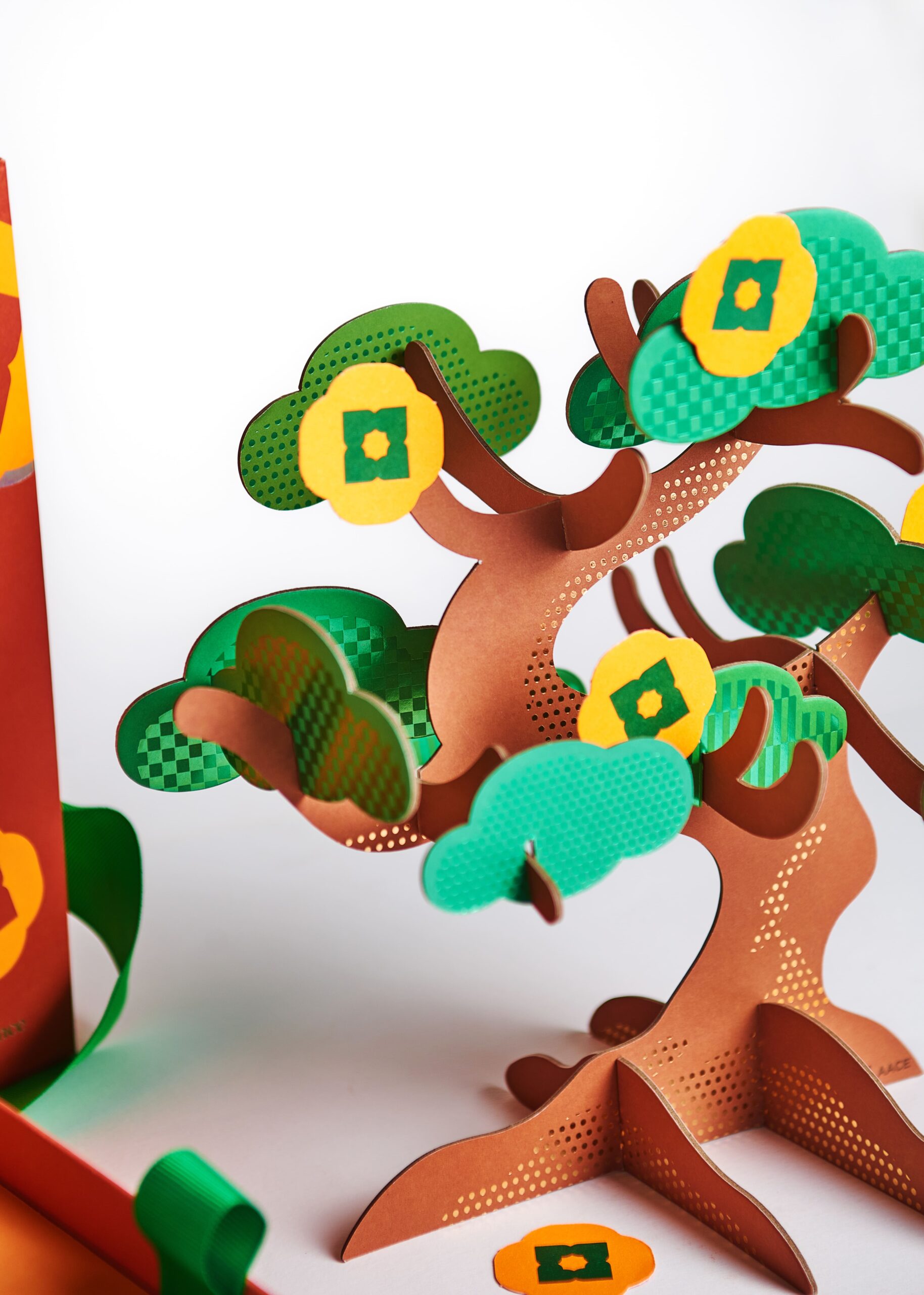 Created in collaboration with AACE (Association of Art in Charity & Education for the Disabled & Disadvantaged), this limited-edition set features a fruit box–inspired design and a handcrafted paper persimmon made from repurposed materials, created by disabled artisans and single mothers.